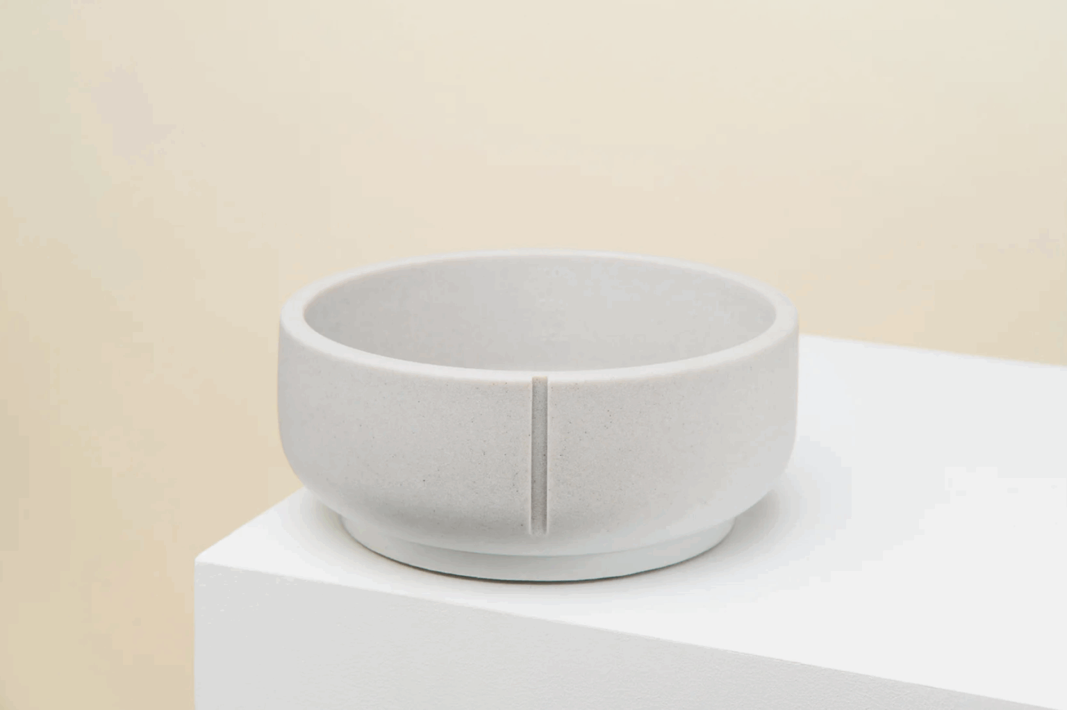 MATERIAL Its heavy weight and non-slip finish keeps the bowl standing while eating. Made of the durable material polysand which contains up to 70% of sand. A very strong material that doesn't break easily.