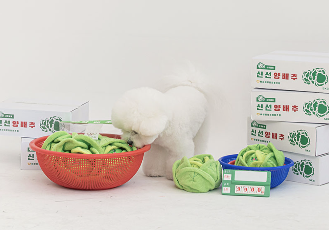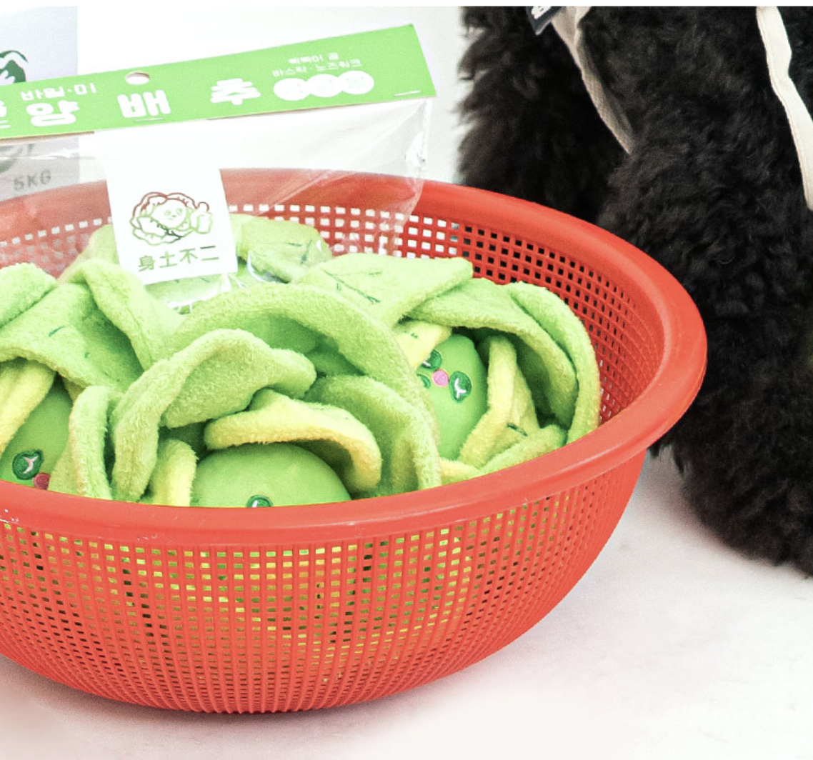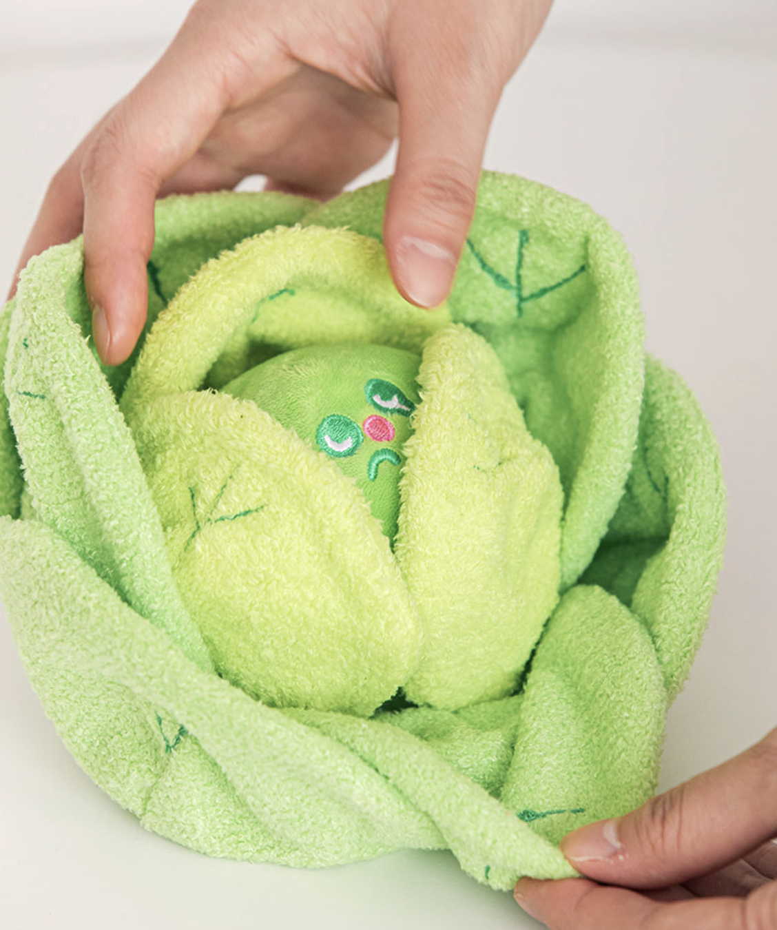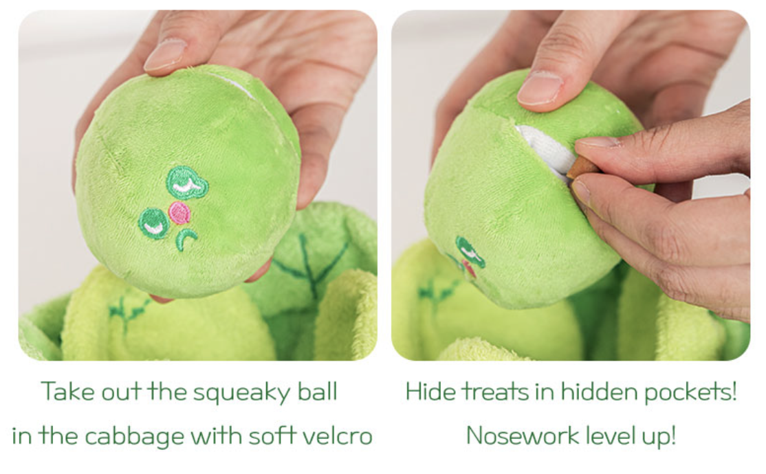 - The cabbage inside has a nose pocket with a squeaky ball!