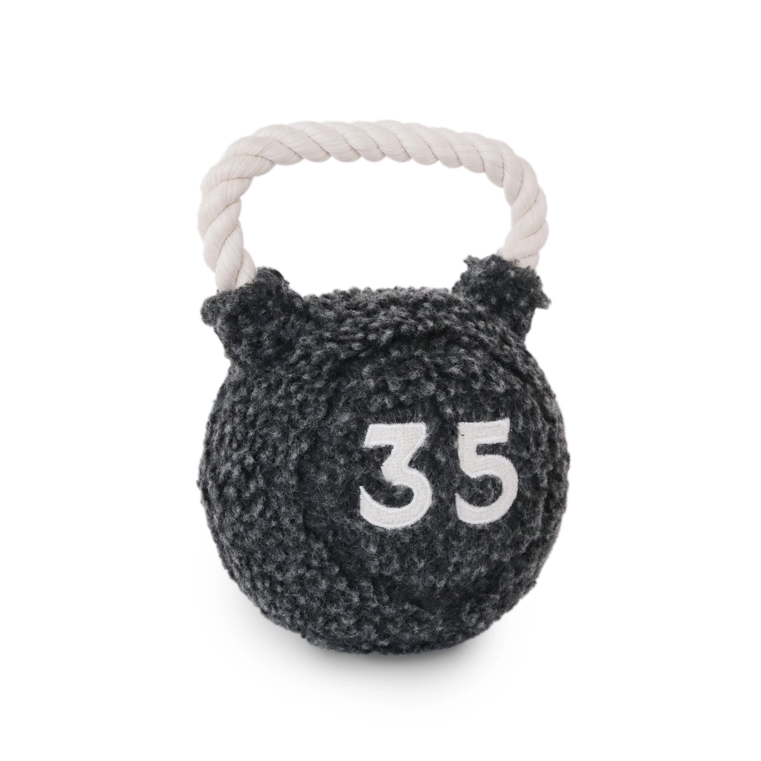 Maak kennis met KETTLEBELL — onze pluche versie van de klassieke kettlebell, gemaakt voor pups die hun geest net zo graag trainen als hun spieren.