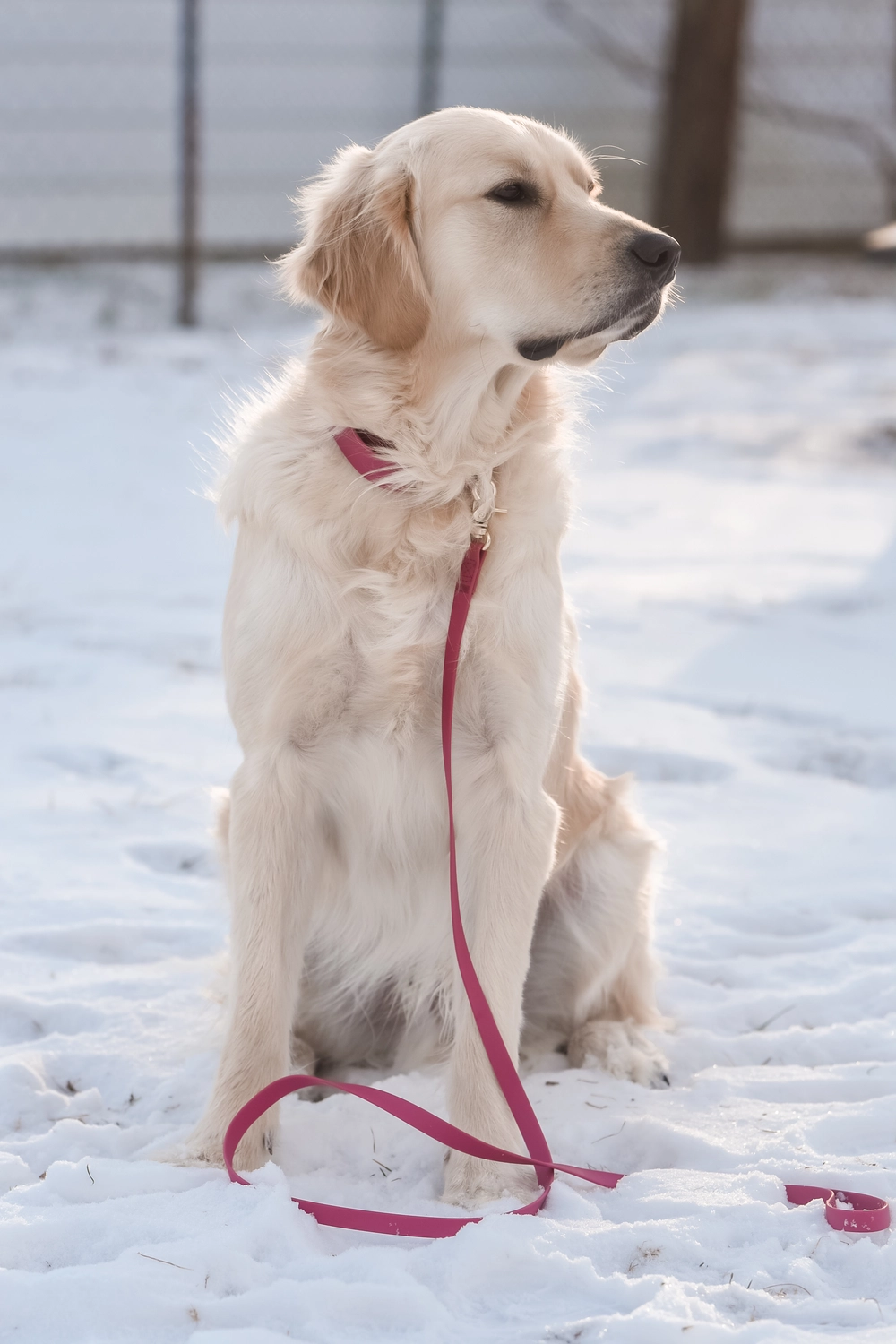 Discover our lightweight, butter-soft, odour-resistant and weatherproof Cloud Dog Collar. We have developed this collar with 100% vegan PVC-coated webbing that has been tested for tensile strength up to approximately 340 kg. The collars are finished with a luxurious, light gold, rust-resistant buckle with quick-release fastening.