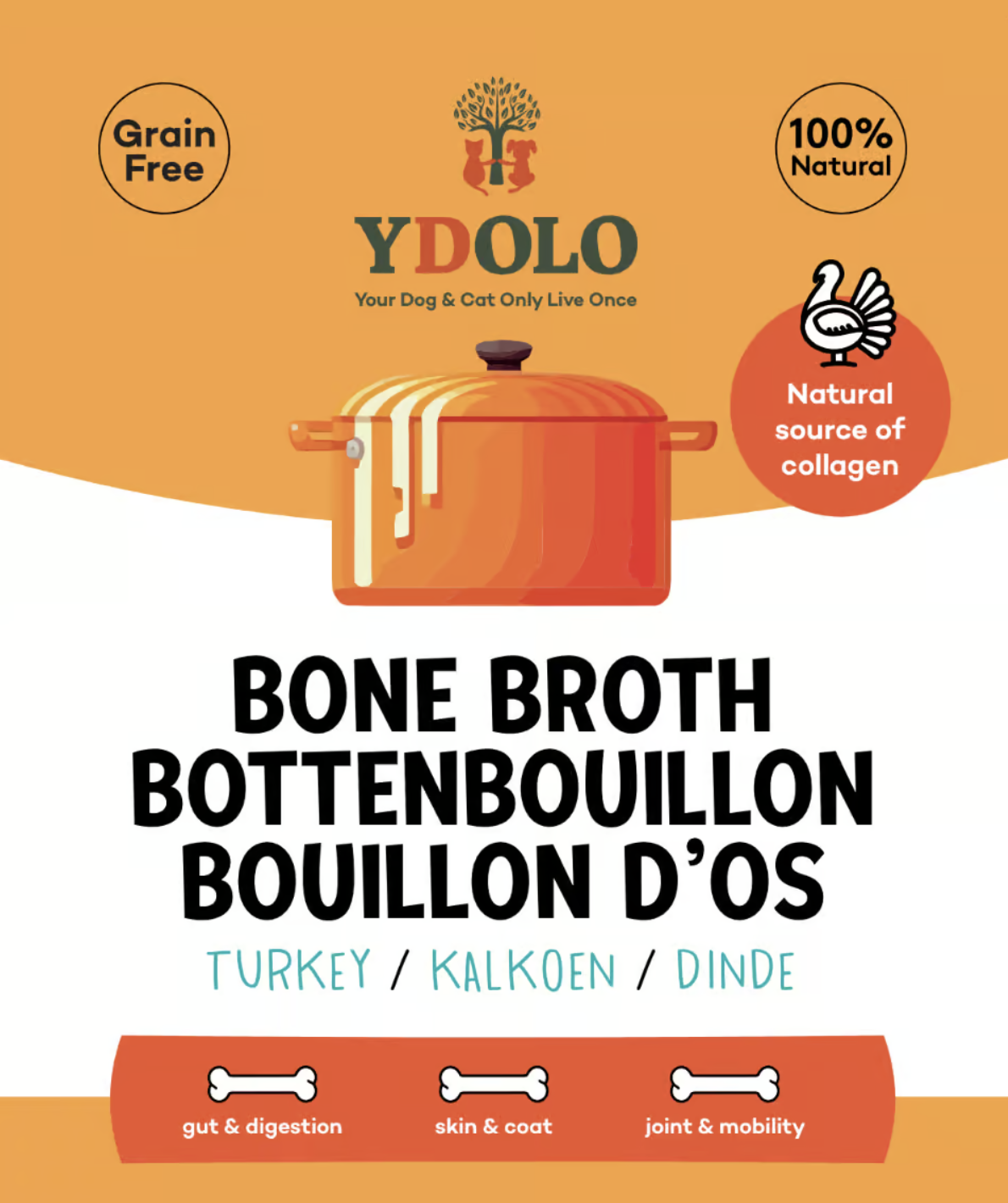 Het toevoegen van bottenbouillon met kalkoen aan het dieet van een hond of kat helpt bij het verkrijgen van de benodigde voedingsstoffen en verbetert de spijsvertering. Het helpt de darmen te herstellen en te genezen door er een slijmlaag op af te zetten.