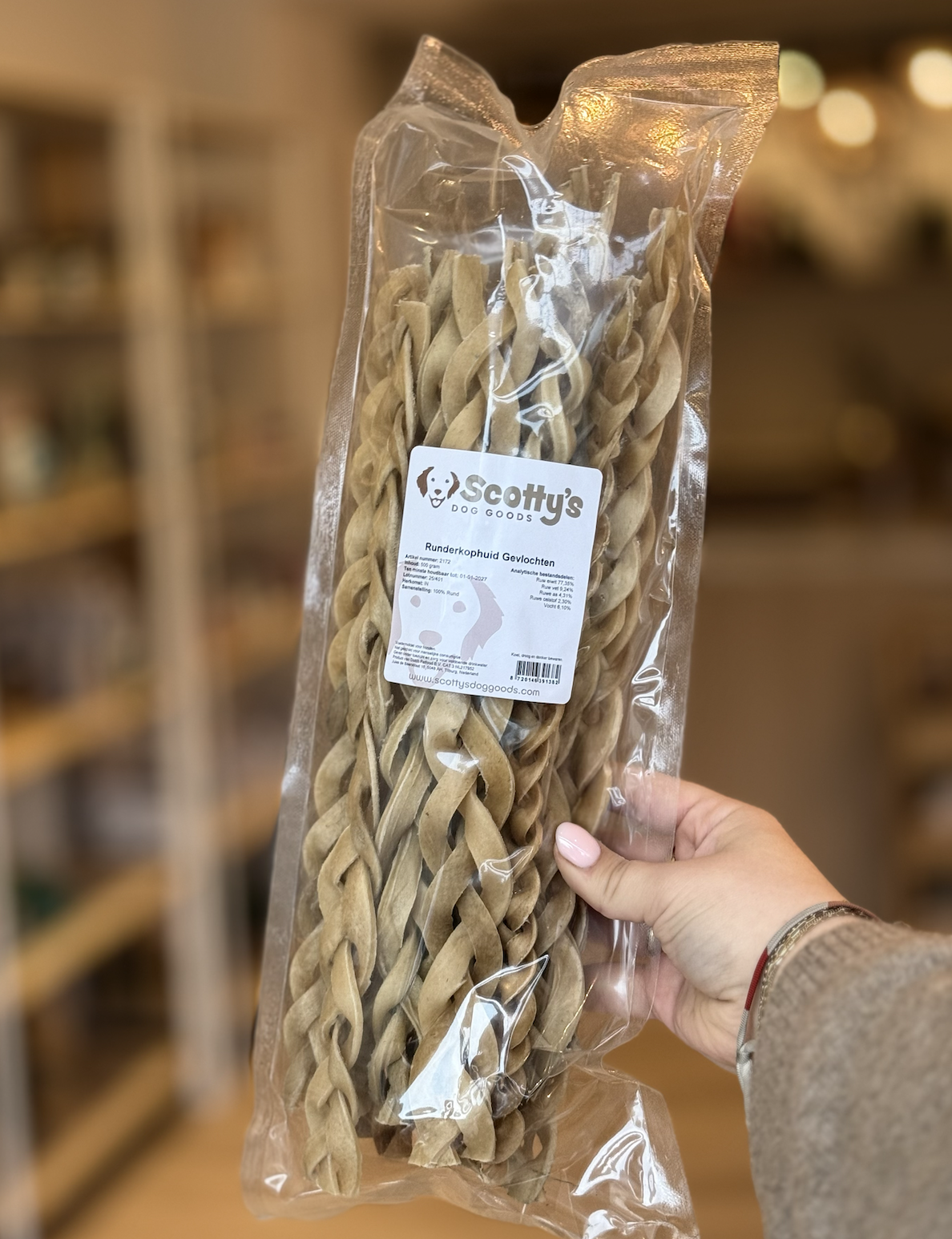 Verwen jouw hond met een 100% natuurlijke, gevlochten runderkopschil – een stevig en smaakvol kauwsnack gemaakt van hoogwaardig rund. Dankzij de gevlochten structuur biedt deze kauwsnack langdurig kauwplezier en helpt het op een natuurlijke manier bij het reinigen van het gebit. Het kauwen ondersteunt de verwijdering van tandplak en tandsteen en bevredigt de natuurlijke kauwbehoefte van je hond.