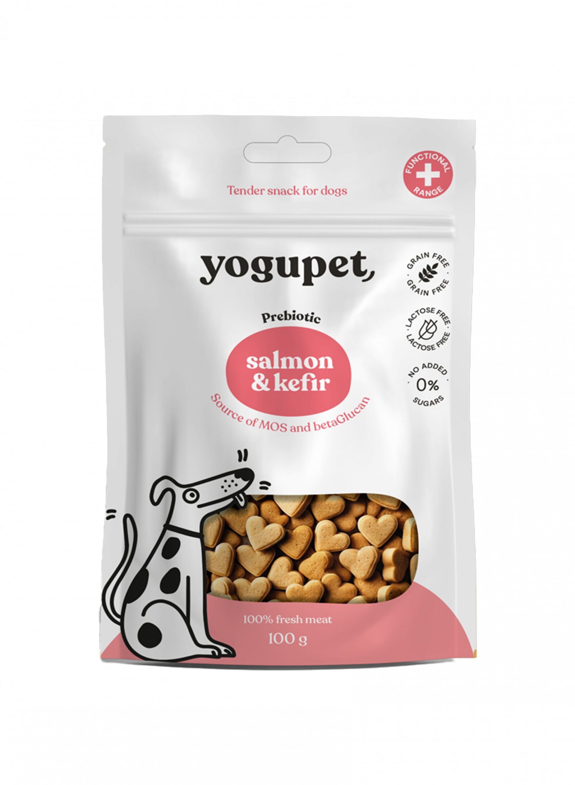Het is een semi-vochtige aanvullende voeding met zalm en kefir.