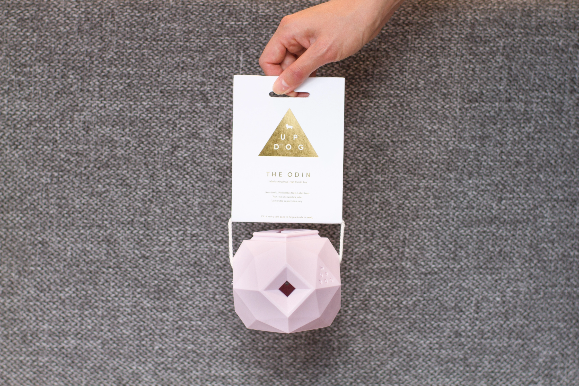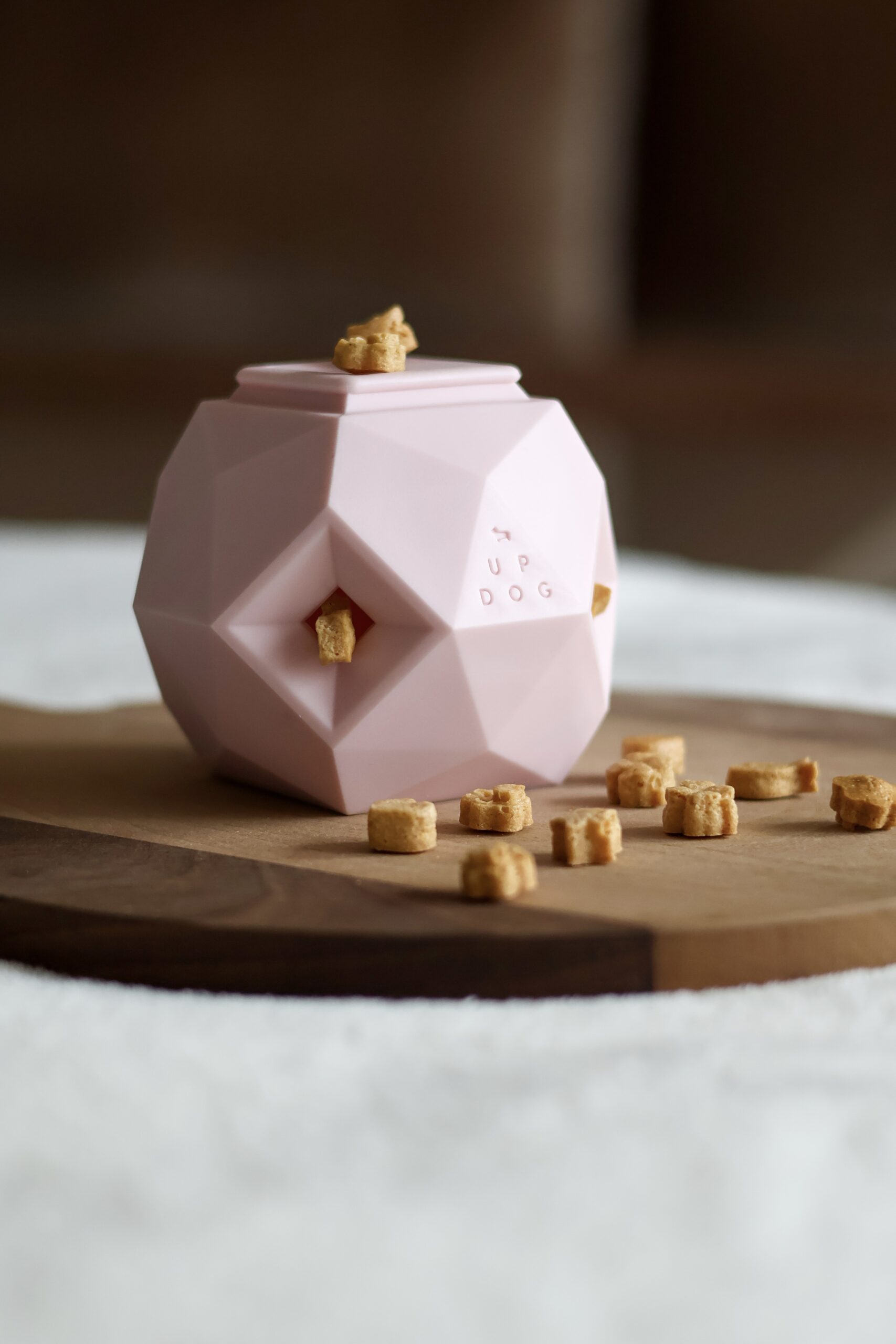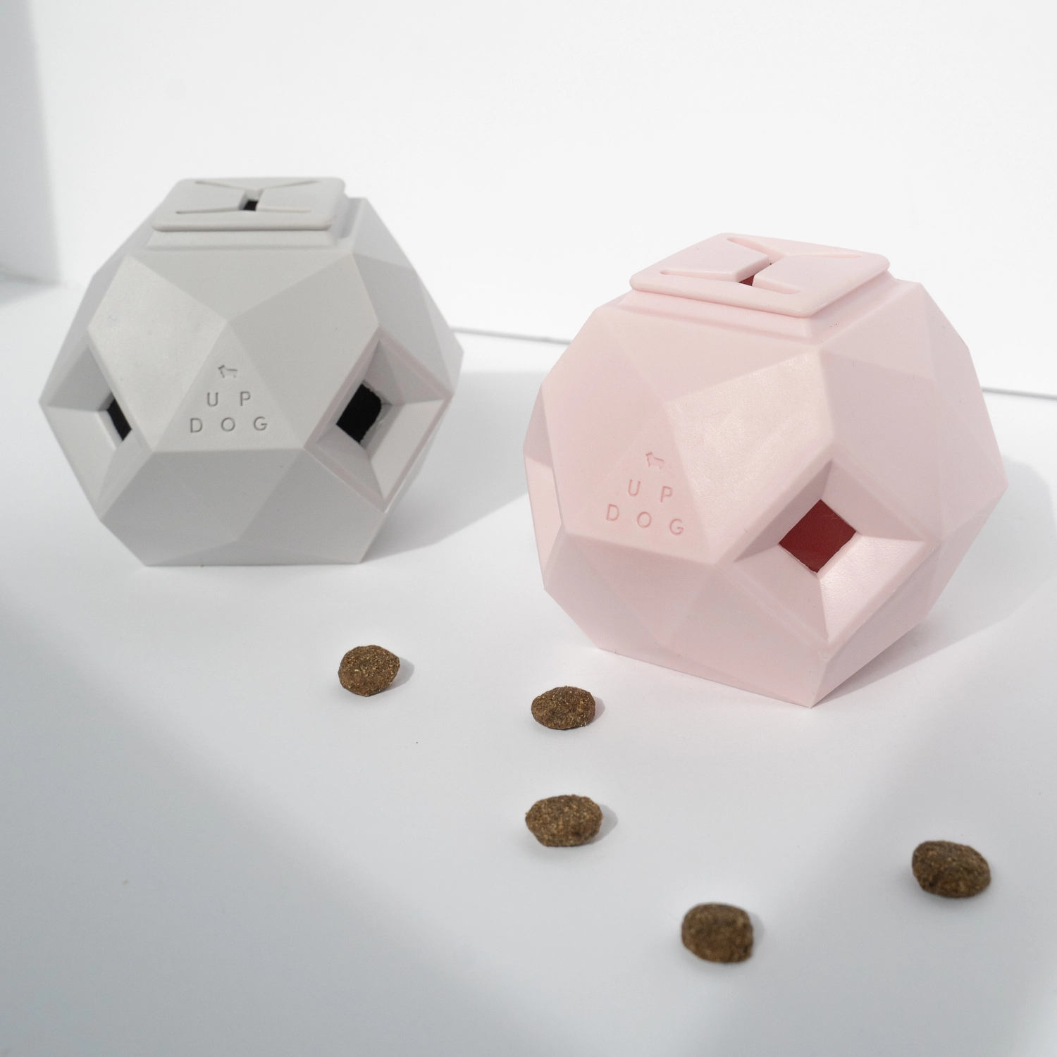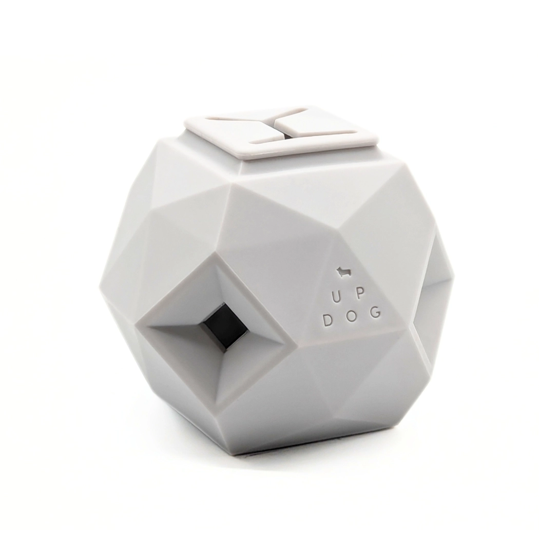 A treat dispensing enrichment dog toy with a modern, modular design. Put treats into the flaps and let your dog toss and roll The Odin to get treats out. Attach 2 or more The Odin toys to keep the toy interactive and change the way your dog interacts with the toy.