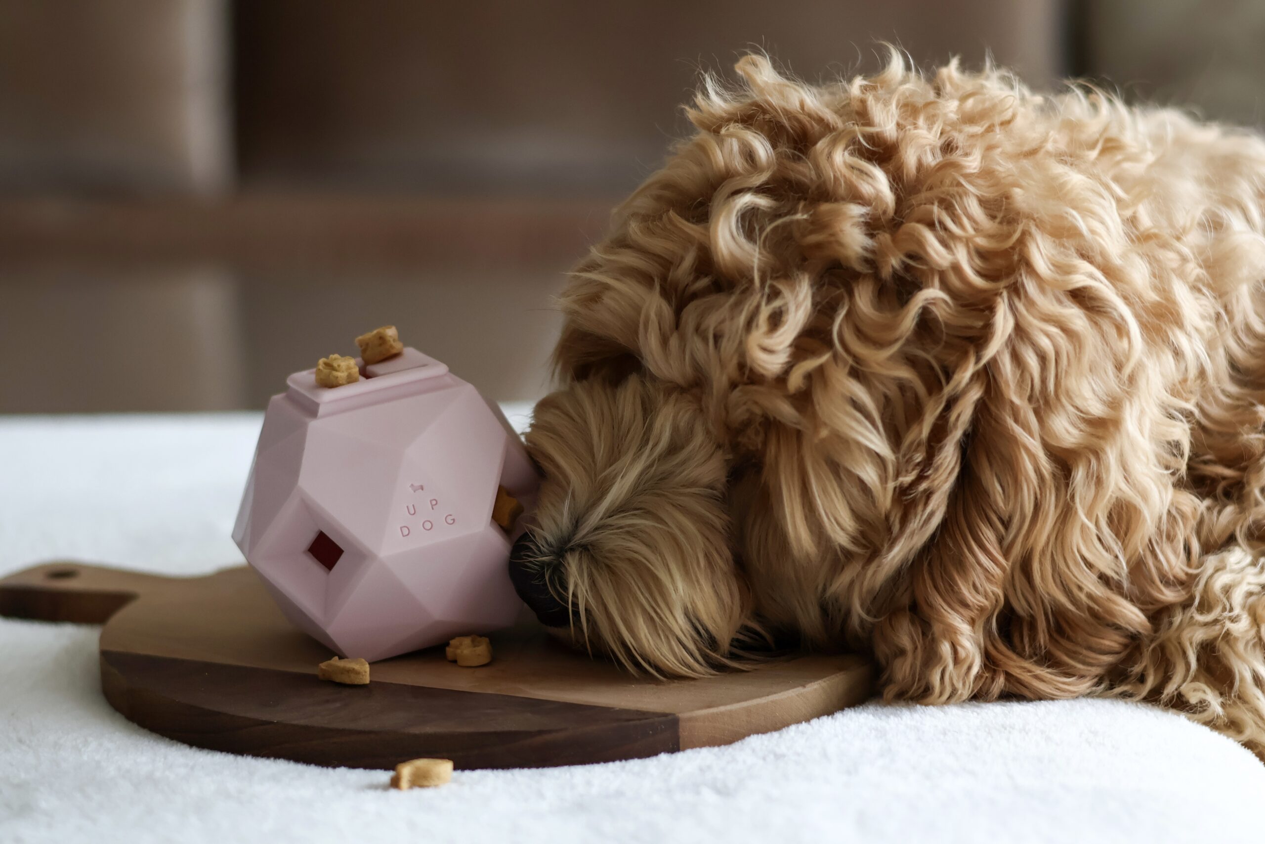 – Begin met kleine lekkernijen of brokjes die er gemakkelijk uitvallen, zodat uw hond snel wordt beloond voor het spelen.