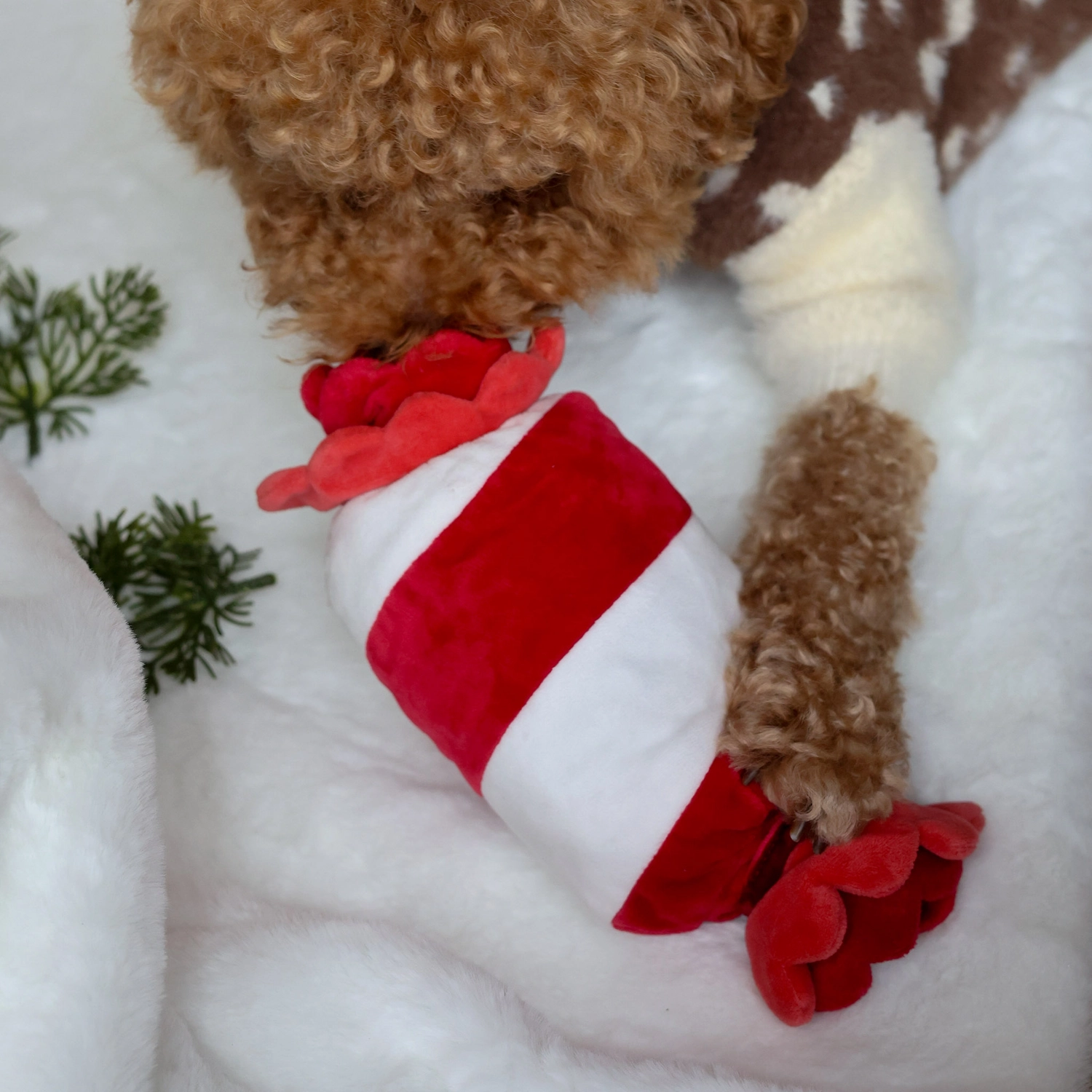 Zoet, zacht en heerlijk om in te snuffelen! Het Peppermint Candy snuffelspeeltje laat je hond deze kerst “uitpakken” op zijn eigen manier. Het speeltje heeft de vorm van een feestelijk snoepje, met knisperende uiteinden en een zachte, pluche kern vol plekjes om snacks te verstoppen. Verstop, snuffel en speel — een echte zintuiglijke traktatie die het hele seizoen voor kwispelende staarten zorgt!