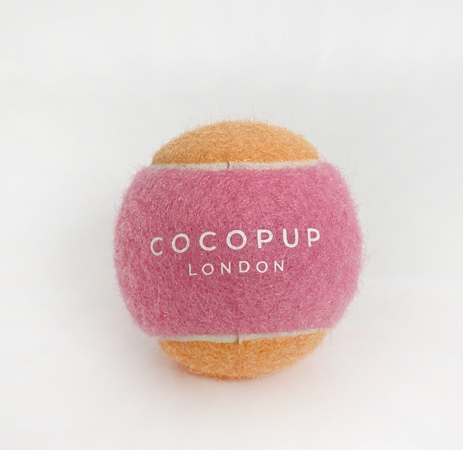 Treat your pup to a game of fetch with a Cocopup Tennis Ball, made just for dogs! Durable yet bouncy, your pup will have endless fun chasing and playing with this paw-fect toy. One size Cocopup branding For supervised use only. If Tennis Ball becomes damaged, stop using and remove immediately.