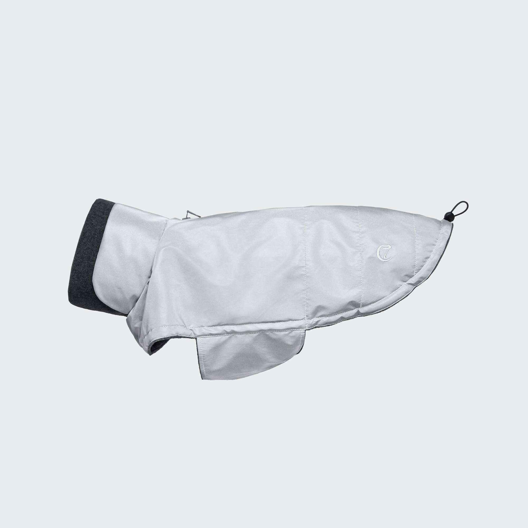 A dog winter coat with a comfortable fit, warmly lined with fleece and finished with a highly water-repellent, reflective fabric.